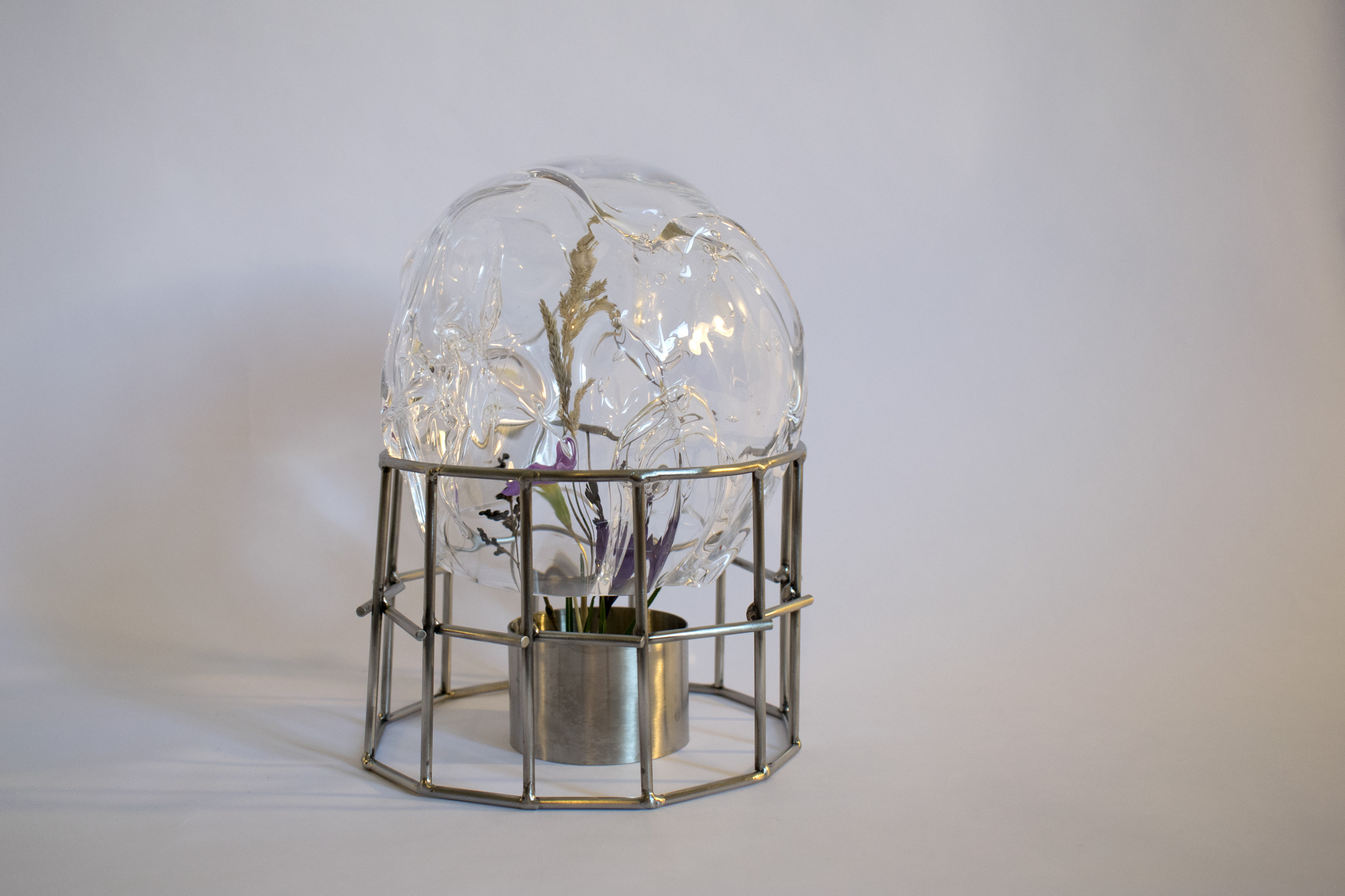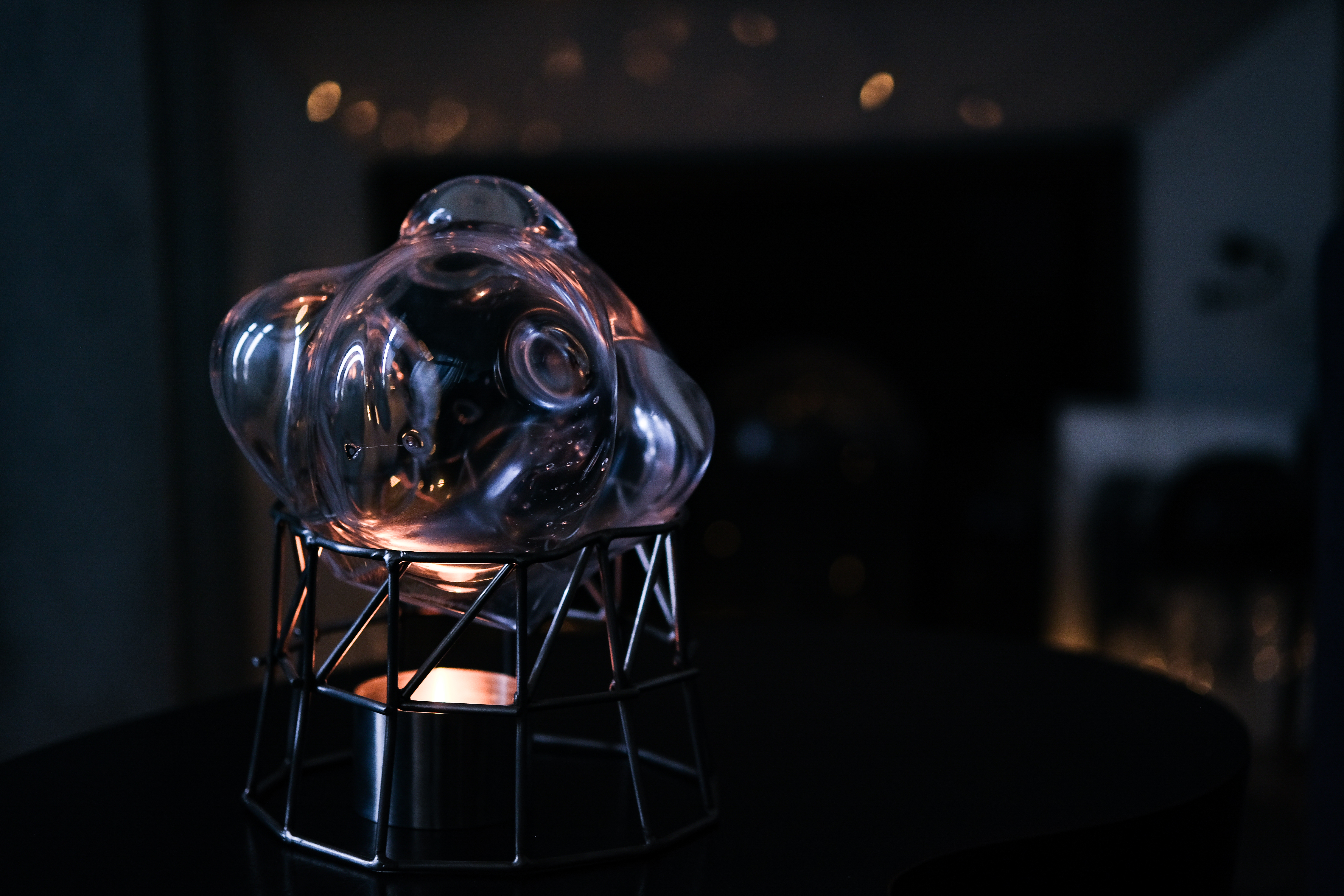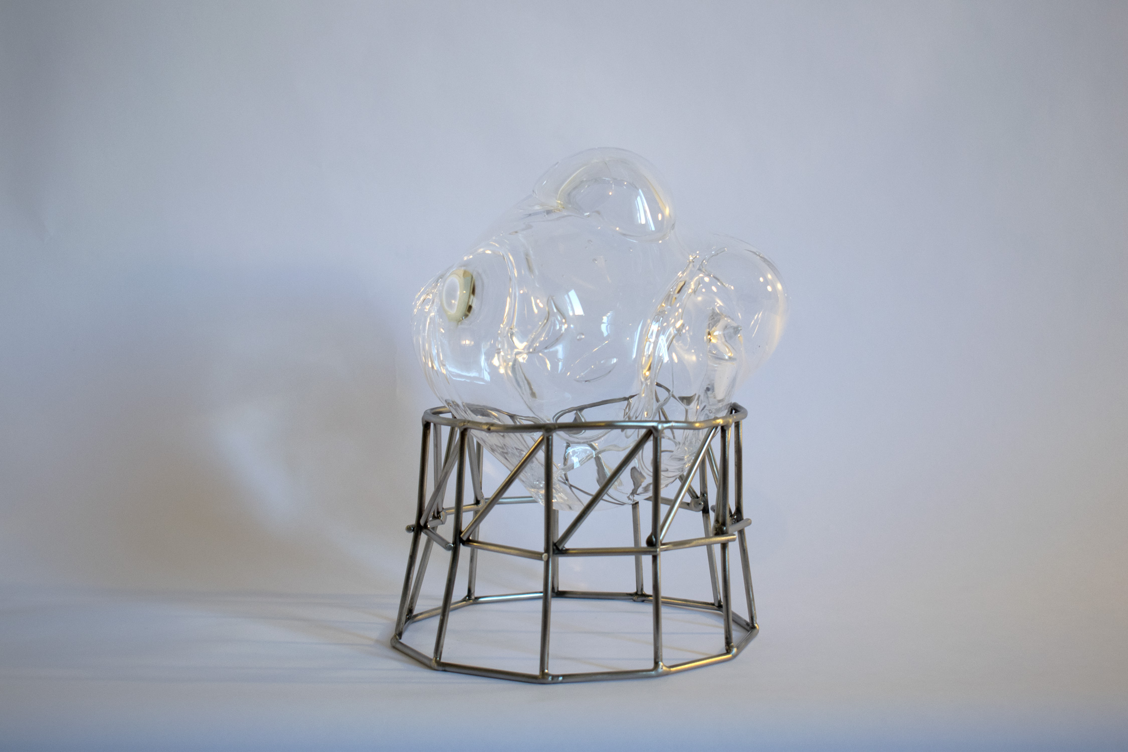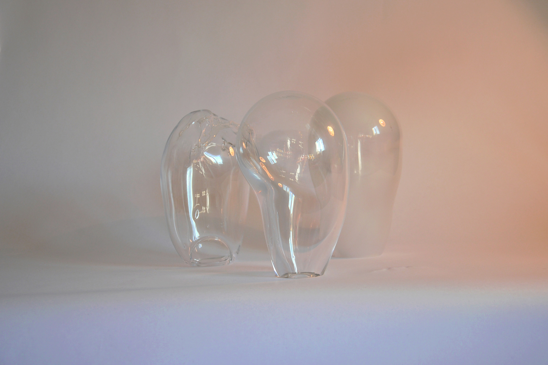 En-Bullés est l’expression et le reflet de cette période étrange de confinement. Chaque bulle est unique, singulière et indépendante comme tout être humain, individus à part entière et différents des uns des autres en société. La bulle et le verre sont étroitement liés. Tout type d’objet en verre se fait par l’étape primordiale de préparation à l’objet, la formation d’une bulle. Plus la matière du verre se gonfle, plus elle s’affine et devient extrêmement fine. Elle finit par s’éclater, tomber en morceaux, puis en particule de verre volant si le processus n’est pas arrêté à temps. Cette matière fragile doit être maniée avec délicatesse, avec précaution, tout comme nous, sinon il y a rupture. Certaines de ces bulles sont des luminaires.