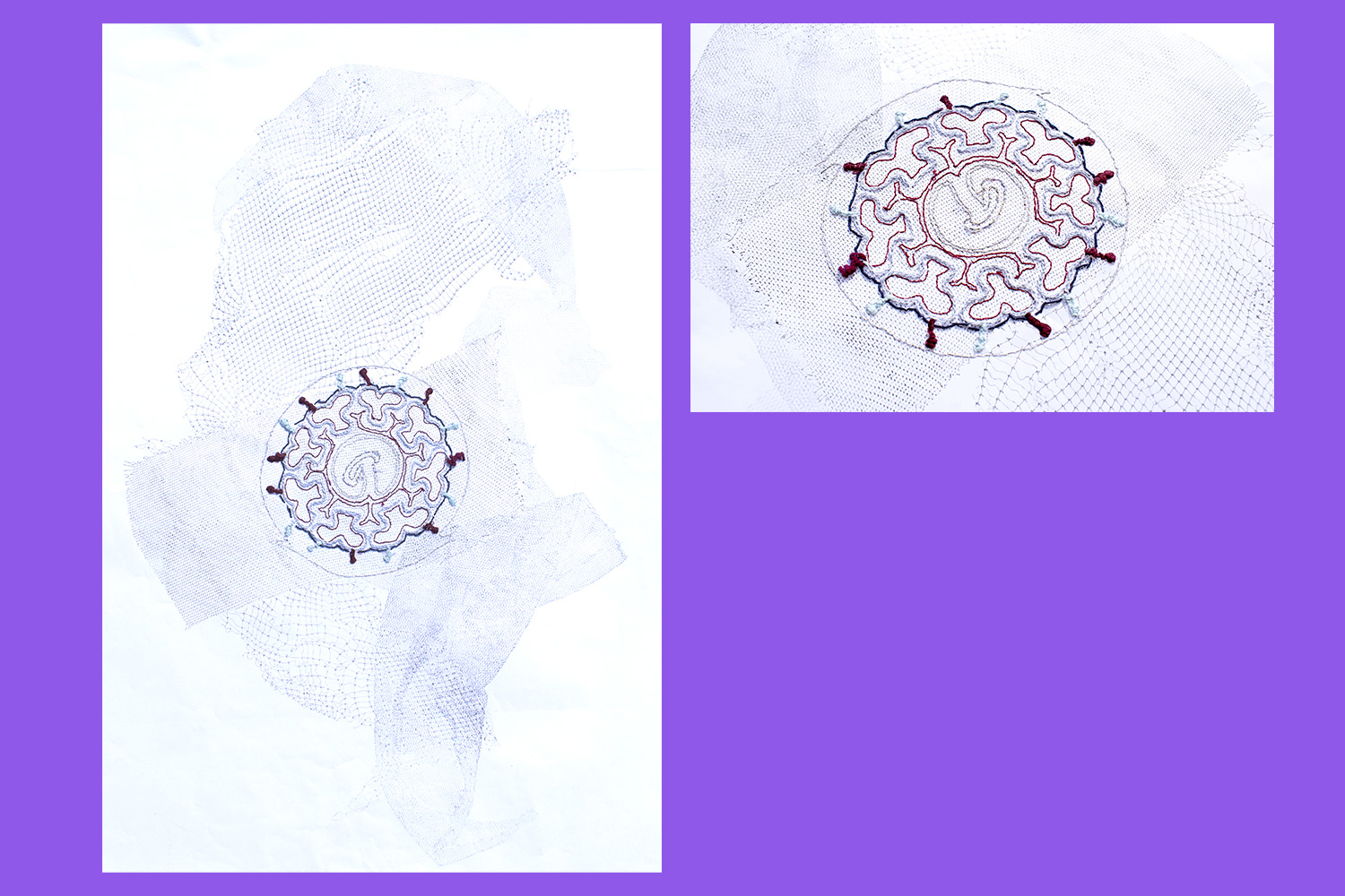 08 — Illustration informant sur les particularités du développement du placenta. ( gravure, papier, broderie)