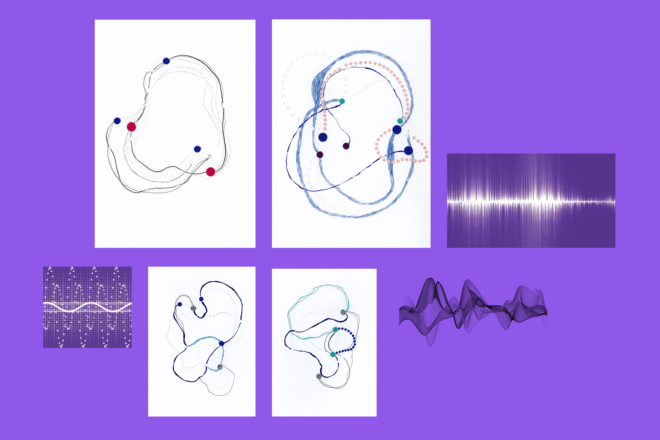 Ces dessins intuitifs ont nourri les recherches formelles des dispositifs sonores « Vers un Dialogue ». Ils représentent un paysage sonore, la dimension sonore qui stimule les sens de chaque être vivant. (Les bruits, les ondes, les vibrations, les flux…)